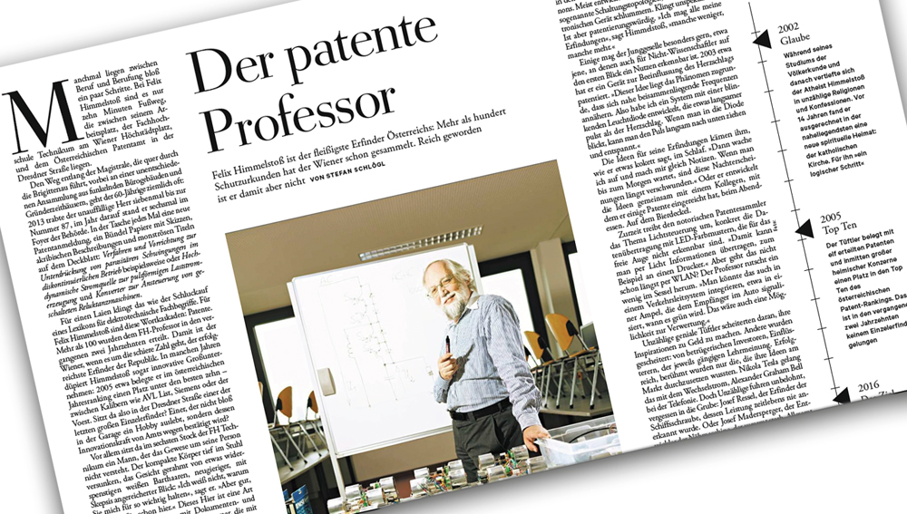 Am Anfang standen eine Recherche in den Datenbanken des Patentamts und die Frage: Wer ist Österreichs fleißigster Erfinder? Die Antwort war: Franz Himmelstoß, stolzer Inhaber von über 100 Patenten. Doch als ich den Wiener kontaktierte, um ihn für ein Porträt in der ZEIT zu erwärmen, war seine erste Reaktion: